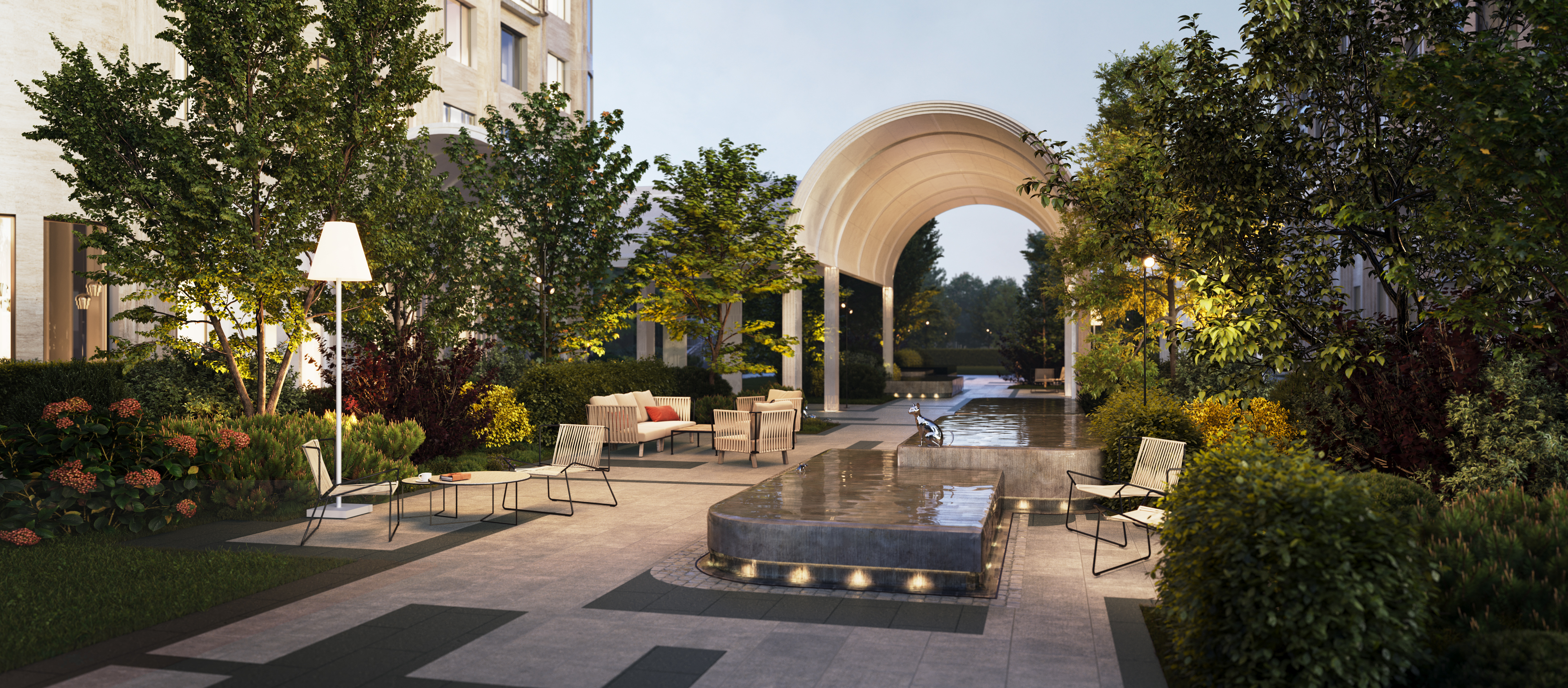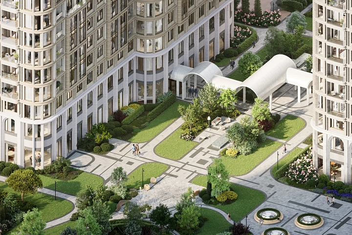 Благородная пластика и эксклюзивный декор фасадов, большие площади остекления — каждая деталь говорит о тонком вкусе и уважении к традициям.